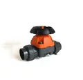 隔膜閥的結(jié)構(gòu)簡單、流體阻力小、流通能力較同規(guī)格的其他類型閥大;無泄漏,能用于高粘度及有懸浮顆粒介質(zhì)的調(diào)節(jié)。隔膜把介質(zhì)與閥桿上腔隔離,所以沒有填料介質(zhì)也不會外漏。但是,由于隔膜和襯里材料的限制,耐壓性、耐溫性較差,般只適用于1.6MPa公稱壓力和150℃以下。